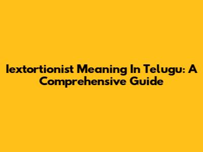 Iextortionist Meaning In Telugu: A Comprehensive Guide