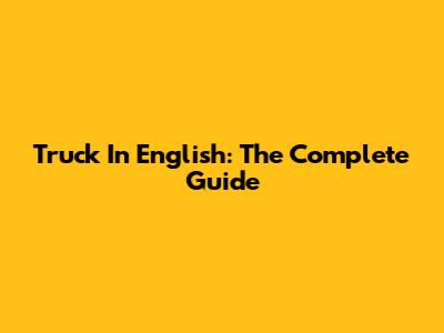 Truck In English: The Complete Guide