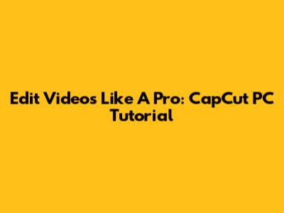 Edit Videos Like A Pro: CapCut PC Tutorial