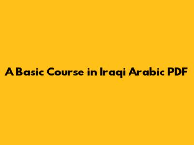 What to Expect in a Basic Iraqi Arabic Course PDF