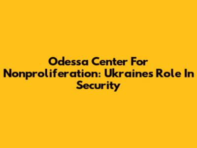 Odessa Center For Nonproliferation: Ukraine's Role In Security
