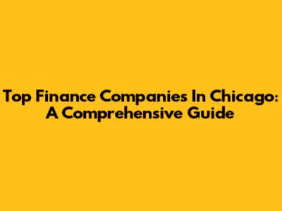 Top Finance Companies In Chicago: A Comprehensive Guide
