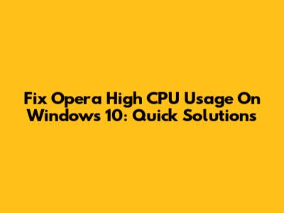 Fix Opera High CPU Usage On Windows 10: Quick Solutions