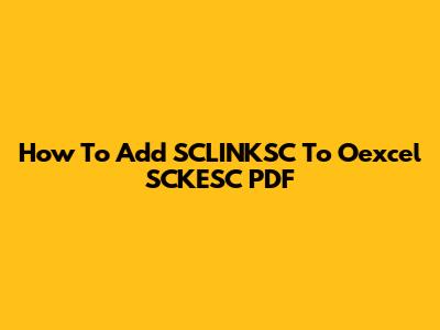 How To Add SCLINKSC To Oexcel SCKESC PDF