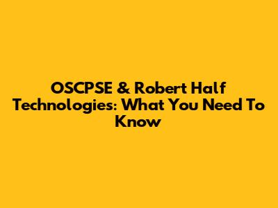 OSCPSE & Robert Half Technologies: What You Need To Know