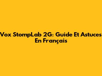 Vox StompLab 2G: Guide Et Astuces En Français