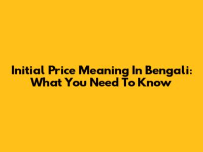 Initial Price Meaning In Bengali: What You Need To Know