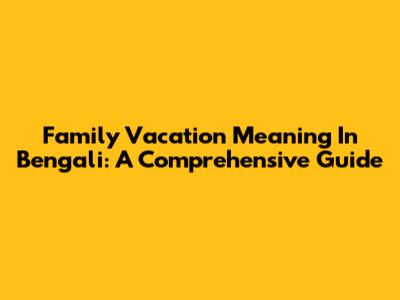 Family Vacation Meaning In Bengali: A Comprehensive Guide
