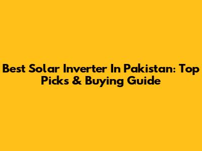 Best Solar Inverter In Pakistan: Top Picks & Buying Guide