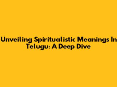 Unveiling Spiritualistic Meanings In Telugu: A Deep Dive