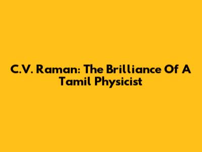 C.V. Raman: The Brilliance Of A Tamil Physicist