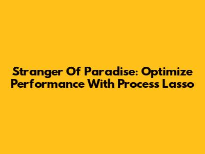 Stranger Of Paradise: Optimize Performance With Process Lasso