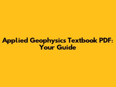 Applied Geophysics Textbook PDF: Your Guide