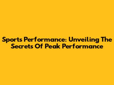 Sports Performance: Unveiling The Secrets Of Peak Performance