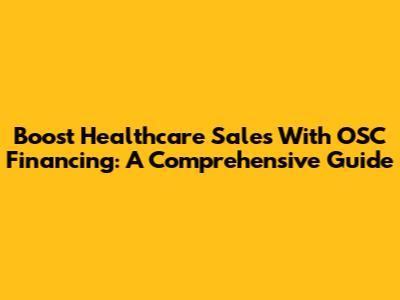 Boost Healthcare Sales With OSC Financing: A Comprehensive Guide