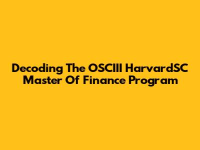 Decoding The OSCIII HarvardSC Master Of Finance Program