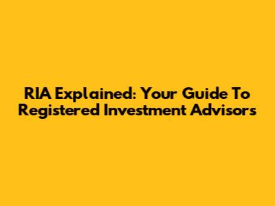 RIA Explained: Your Guide To Registered Investment Advisors