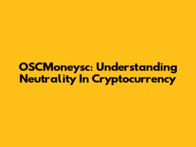 OSCMoneysc: Understanding Neutrality In Cryptocurrency