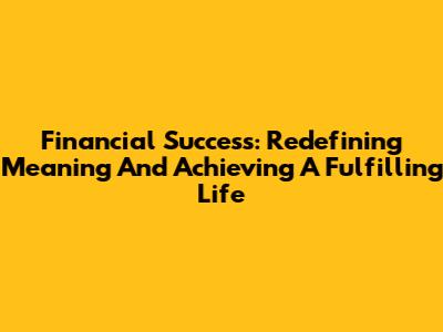 Financial Success: Redefining Meaning And Achieving A Fulfilling Life