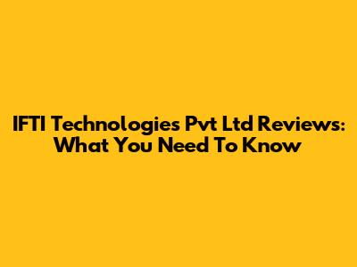 IFTI Technologies Pvt Ltd Reviews: What You Need To Know