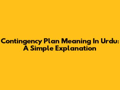 Contingency Plan Meaning In Urdu: A Simple Explanation