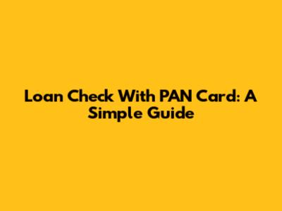 Loan Check With PAN Card: A Simple Guide