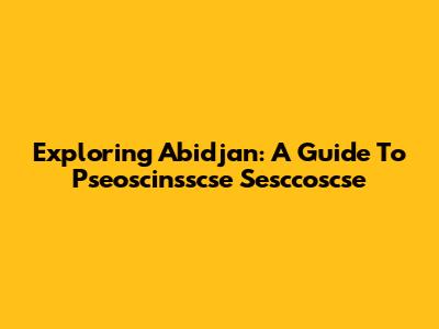 Exploring Abidjan: A Guide To Pseoscinsscse Sesccoscse