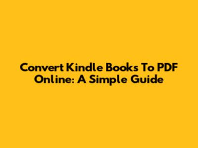 Convert Kindle Books To PDF Online: A Simple Guide