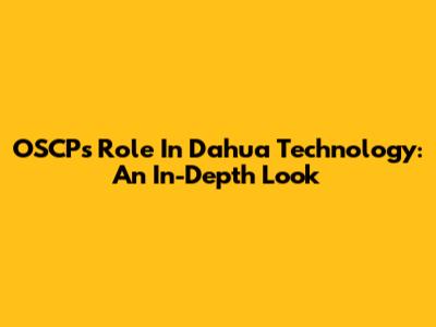 OSCP's Role In Dahua Technology: An In-Depth Look