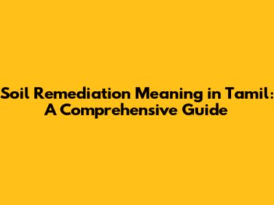 Soil Remediation in Tamil: A Closer Look