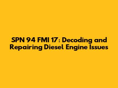 Hey everyone! Today, we're diving deep into the world of diesel engine diagnostics. We're going to break down SPN 94 FMI 17, a common trouble code you might encounter. Understanding this code is key to keeping your diesel engine running smoothly, so buckle up! This guide will cover everything from what SPN 94 FMI 17 actually means to how you can troubleshoot and fix the underlying issues. We'll explore the possible causes, the tools you'll need, and the steps to take to get your engine back in tip-top shape. Whether you're a seasoned mechanic or a DIY enthusiast, this comprehensive guide will provide you with the knowledge you need to tackle this problem head-on. Let's get started!