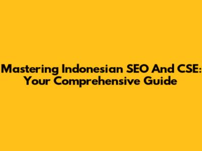 Mastering Indonesian SEO And CSE: Your Comprehensive Guide