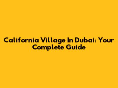 California Village In Dubai: Your Complete Guide