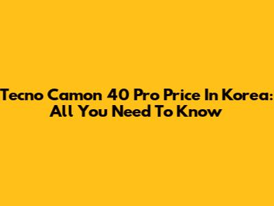 Tecno Camon 40 Pro Price In Korea: All You Need To Know