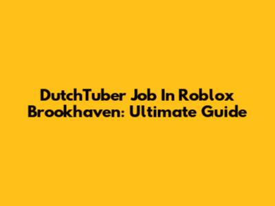 DutchTuber Job In Roblox Brookhaven: Ultimate Guide
