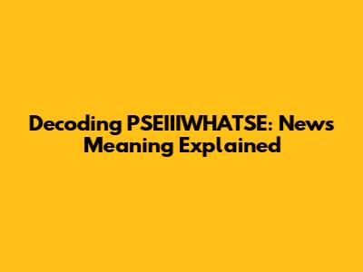 Decoding PSEIIIWHATSE: News Meaning Explained