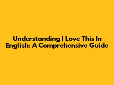 Understanding "I Love This" In English: A Comprehensive Guide