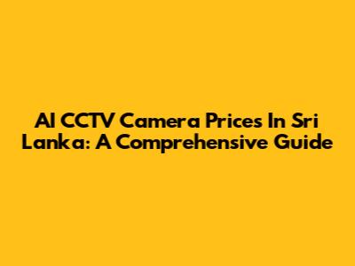 AI CCTV Camera Prices In Sri Lanka: A Comprehensive Guide