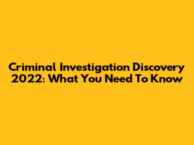 Criminal Investigation Discovery 2022: What You Need To Know
