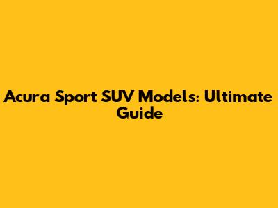 Acura Sport SUV Models: Ultimate Guide
