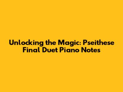 Hey guys, let's dive headfirst into the world of pseithese final duet piano notes! This is a fascinating topic, and I'm super pumped to break it down for you all. We're going to explore what makes these notes so special, how they fit into the bigger picture of music, and why they’re a real treat for both pianists and listeners. So, buckle up, because we’re about to go on a musical adventure! I'll be sharing some cool insights, tips, and even some fun facts to make this a truly awesome experience. Whether you’re a seasoned pianist, a music enthusiast, or just curious about the world of piano duets, this is your go-to guide. Let’s get started and unravel the magic behind pseithese final duet piano notes. I'm here to make this journey as exciting and informative as possible. So, get ready to learn, discover, and appreciate the art of music like never before. Remember to keep an open mind, a curious spirit, and a passion for music. You'll be surprised at how much you'll learn and how much you'll enjoy this ride. Are you ready? Let's go!