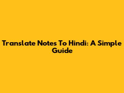 Translate Notes To Hindi: A Simple Guide