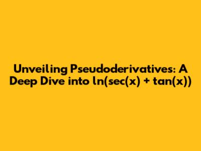 Hey everyone! Today, we're diving deep into the fascinating world of pseudoderivatives, specifically focusing on the function ln(sec(x) + tan(x)). Now, I know, the name might sound a bit intimidating, but trust me, we'll break it down step by step and make it super understandable. We'll explore what pseudoderivatives are, why they're useful, and how to tackle them with a specific example. So, buckle up, because we're about to embark on an exciting mathematical journey! We'll begin by addressing the fundamental question: what are pseudoderivatives, and why should you care about them? Well, pseudoderivatives are basically a method for finding the derivatives of functions that may not be straightforward or easy to differentiate by basic rules. They are particularly useful when dealing with complex trigonometric and logarithmic functions, where direct differentiation can be cumbersome. Pseudoderivatives make things a whole lot easier, offering a clever approach to finding derivatives that might otherwise stump you. We are going to explore the pseudoderivative of ln(sec(x) + tan(x)). Think of it as a special kind of derivative. It's a way to figure out how a function changes without having to go through all the usual steps. Now, if you are new to calculus, that is perfectly okay. You may still learn the fundamental concept even if you have not learned derivative rules.