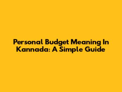 Personal Budget Meaning In Kannada: A Simple Guide