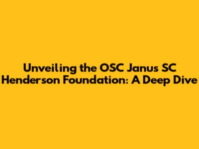Hey guys! Ever heard of the OSC Janus SC Henderson Foundation? If not, you're in for a treat! This article is your all-access pass to understanding everything about this foundation. We'll be diving deep, exploring its mission, impact, and the amazing work they do. Get ready to learn, because we're about to embark on a journey through the world of OSC Janus SC Henderson Foundation and its contributions to the community and beyond. Let's get started!
