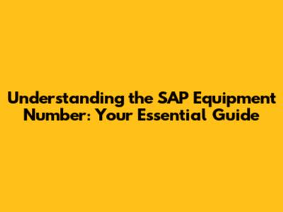 Deep Dive: What Exactly is an Equipment Number in SAP?