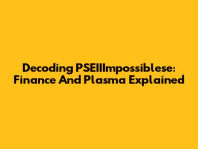 Decoding PSEIIImpossiblese: Finance And Plasma Explained