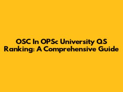 OSC In OPSc University QS Ranking: A Comprehensive Guide