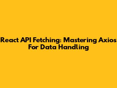 React API Fetching: Mastering Axios For Data Handling