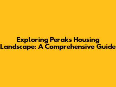 Exploring Perak's Housing Landscape: A Comprehensive Guide